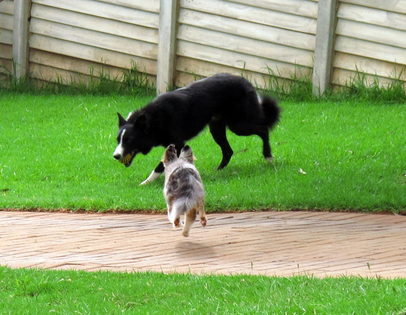 So I haven't posted because I have been a bit discouraged by 'non-agility related agility issues', if that even makes sense. But sitting here, after a late evening training session, a load of BC's panting at my feet with the biggest smiles on their faces and a Sheltie puppy using Echo's mane for a tug toy... I know I love agility and I always will, so I will deal with all the retarded and valid crap and all the good things too, because that is part of it...